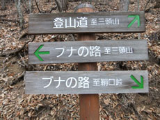| あちこちに「ブナの路」の標識があった。 | 急な所もあったが、良く整備されていた。 | 鞘口峠へ・・・ |
