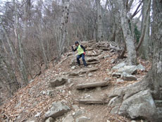 | 整備された快適な登山道(遊歩道?) | 山らしい所もないでもない。 | 山だから、当然急登場面もある。 |