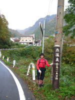 燕温泉の旅館街をバックに、標高1,150mの標識の前で、シャッターを切ってスタートとなった。両側に立ち並んだ旅館街の急な坂道を歩いて行くのであるが、なかなか趣のあるものである。某旅館の前に