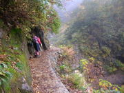 温泉街を登り切った所に、土木作業の重機が置かれ通行止の看板があった。惣滝方面へは「妙仙橋」落橋のため行けないとの事であったが、その橋はどの辺にあるのかわからないまま標識に誘われて北地獄ルートへ足を向けた。(もっとも、北地獄コースを辿り、下山路を黄金清水経由の燕新道をする周遊コースを計画していた。)