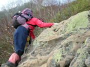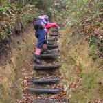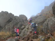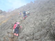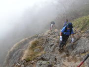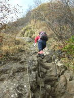 水溜りのような光善寺池まで5分、風穴まで更に15分程。風穴で休憩しているグループを追い越してから、本格的に尾根らしき登山道になり、30~40分程でいよいよ鎖場である。急に青空が広がってきた。