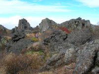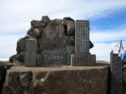 鎖場と言っても怖がる程のものではなく、足場の切ってある溶岩の風化した岩場を慎重に登ればいい。登り切った所が祠のある南峰(最高点)である。僅かながら、北アルプスの峰々が雲海の上にチョッピリ顔を出していたが、山座同定をしないうちに姿を隠してしまった。頚城方面は、私達が登った時には全く見えなかった。