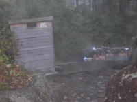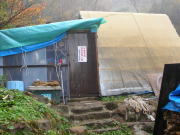 勾配の強い舗装された林道(作業路)を行くと、すぐ露天風呂(黄金の湯)がある。 以前と言っても、ず~っと昔の事であるが、同じ名の湯が河原にあったような記憶があるが・・・・・。(それは、やはり惣滝・燕新道方面にあるようである。)
