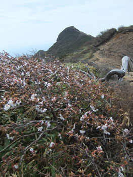 | a.m.11:25 シャクナゲと朝日岳 |
