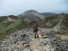 朝日岳を振り返る。 |