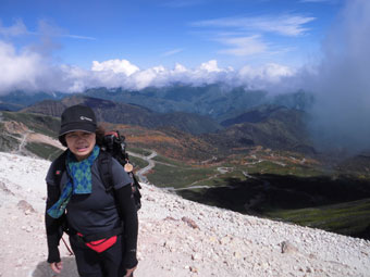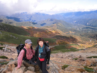 | 紅葉をバックに富士見岳山頂にて |