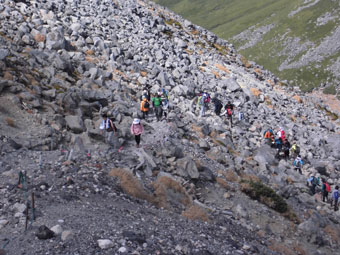 | 続々と登って来る登山者。 |