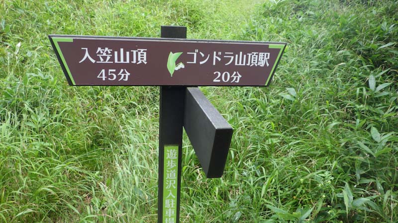 沢入登山口8:05=入笠湿原9:10=岩場コース分岐9:50=入笠山頂上(10:10~11:20)=入笠湿原12:00=沢入登山口12:45