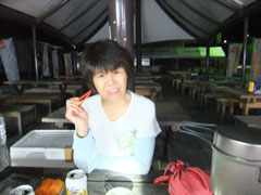 蚊取り線香を点け、良い気分でテントに潜り込んだが、車の出入りが多く、隅っこでも、その騒音で眠られなかった。翌朝に分かった事だが、「山ノ神」は、二日酔いになってしまった。