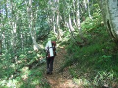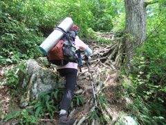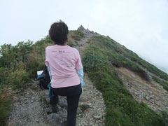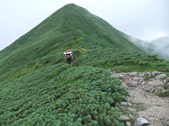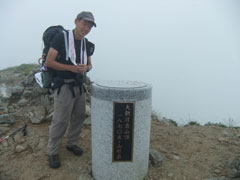 | 山頂まで、もう少し・・・ | p.m.4:05 大朝日岳山頂に到着。 | 北ア・朝日岳のTシャツと 大朝日岳山頂。 |