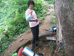 | 中ツル尾根の急登に突入。 | 3合目は、標高850m。 | 4合目・長命水は、1,060m。 |
