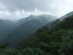 | ようやく、稜線に出た感じ。 | 7合目は、標高1,500m。 | 雲行きが怪しくなって来た。 |