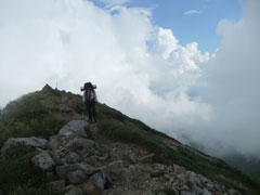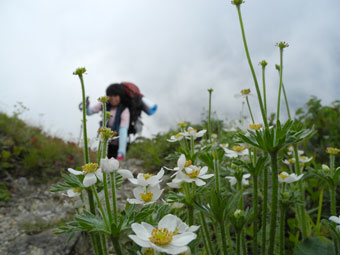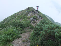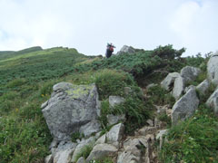 | この時点で8時間を経過している。 | タカネマツムシソウも負けじと・・ | 岩が現れたら、山頂は近い。 |