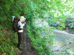 | 2本目の吊り橋 | 沢を渡る。 | 10mくらい降りる。 |