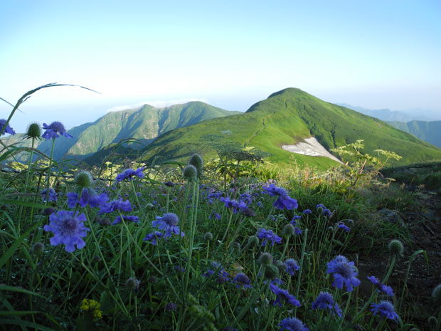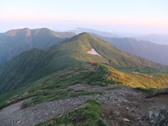 | 大朝日岳山頂避難小屋から、西朝日・龍門方面を望む。 |
