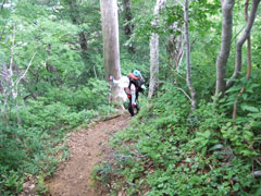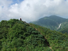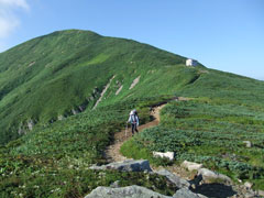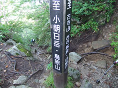 | 小朝日岳と巻道との分岐(鳥越) | 小朝日岳山頂一つ手前のピーク。 | 小朝日岳山頂(1,647m) にて・・・ |