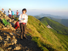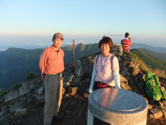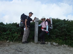 | ちょっと出遅れたが、まずは山頂へ | 右後方に以東岳が・・・ | 方位盤のある山頂で・・・ |