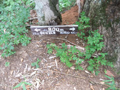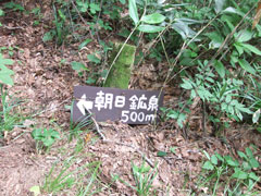 | 標高800m。急な降りになる。 | 中ツル尾根への分岐に出る。 | 朝日鉱泉まで、あと500m。 |