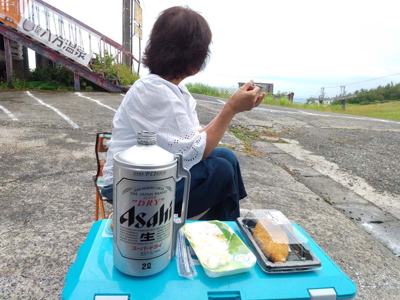 お店から、出た途端に雨になった。ワイパーフル回転である。しかし、和田の森辺りに来ると雨は止んだ。良い時間(午後5時頃)に黒菱平に着く。明日は間違いなくお天気だと思って来たのに何だか怪しい。でも、小さなイス・テーブルを出して飲まなきゃ! そのため(避暑)に来たんだから・・・