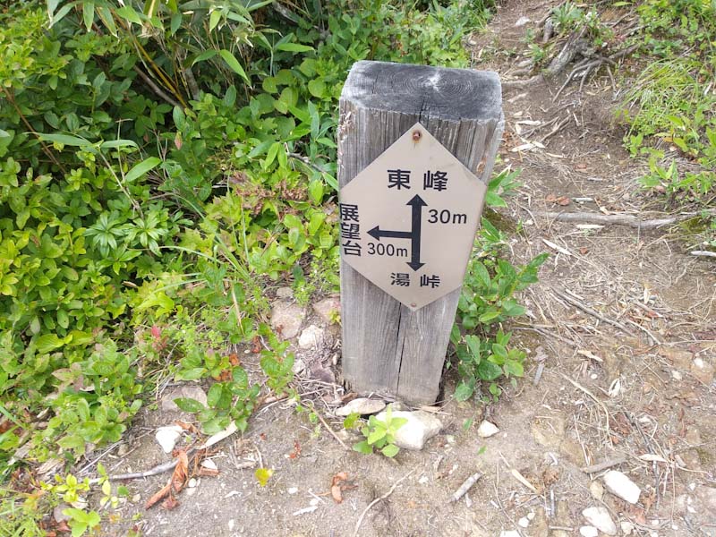 登山口の湯峠までは、道路工事が行われていて、前回の時よりも、もっと手前から歩かなければならなかった。それでも、全部で20分ほどだから大した事はない。それよりも暑い上に、今にも雨が降りそうな雲行きだった。