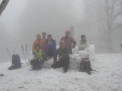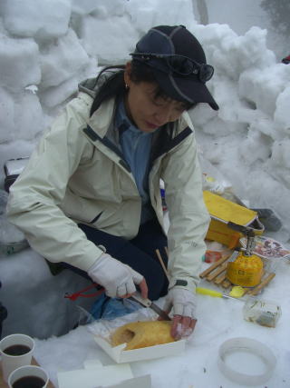 | 「ねぎちゃん」持参の美味しいケーキ | p.m.1:20 記念写真となり、その後下山となる。 |