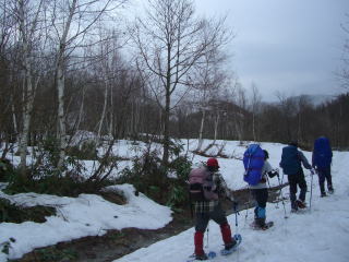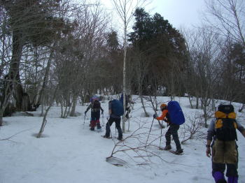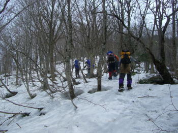| a.m.8:50 林道を歩き始める。 | a.m.9:00 なだらかな尾根に取り付く |