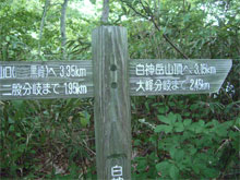 | 蟶山分岐 | 山頂まで、3・15キロ | なだらかで長い尾根筋を行く。 |