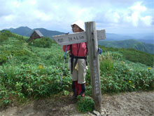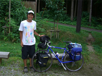 | 自転車で北海道旅行の途中、白神岳に寄った平田君 |