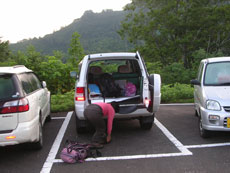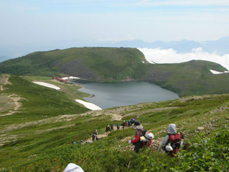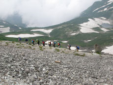 | 午前6時前の出発は可能に・・ | 登山口は蓮華温泉 | 雪倉岳をバックに天狗ノ庭で・・ |
