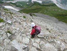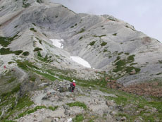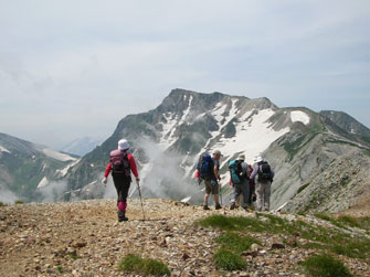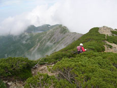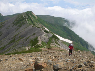 | 雪倉岳方面からのパーティー(三国境) | 三国境から小蓮華山へ・・・ | p.m.2:35 小蓮華山までもう一踏ん張り。 |