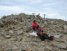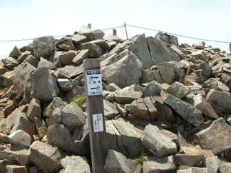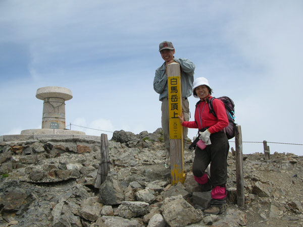 | 山頂の方位盤と共に・・・ | 白馬岳山頂にて・・・ | 山頂を後にして10分。 |