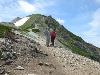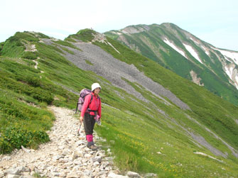 | a.m.9:25 大勢の登山者と擦れ違う。 | a.m.9:40 小蓮華山までは、幾つものアップダウンがある。 |