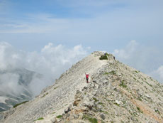 | a.m.10:20 小蓮華山まで、あと20分ほど。 | 山頂を眺めながらの稜線歩きは気持ちが良い。 |
