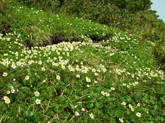 | a.m.11:55 お花に目を奪われてしまって・・ | p.m.0:15 最後の登り あと10分。 | 白馬岳は、一等三角点の山。 |
