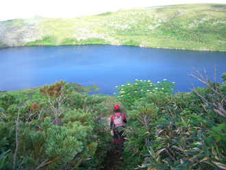 蓮華温泉5:45=天狗ノ庭(7:15~30)=白馬大池(8:30~9:00)=小蓮華山(11:10~25)=三国境12:00=白馬岳頂上(13:10~50)=三国境14:35=小蓮華山(15:15~20)=白馬大池(16:45~55)=天狗ノ庭(17:50~18:00)=蓮華温泉19:15
