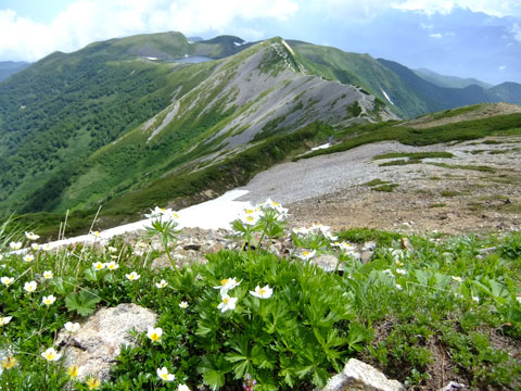 | 小蓮華山へ続く稜線。 |