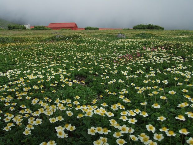 | 白馬大池周辺のチングルマの群落は見事であった。 |