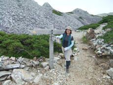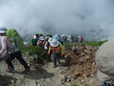 | 白馬岳山頂へ・・・ | 思わぬ盛田女史との再会に感激! | 逆光だったが、記念の写真に収まる。 |