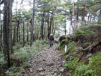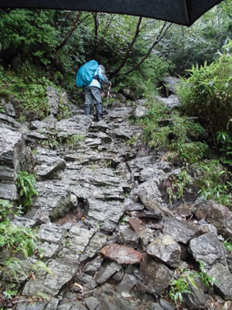 「それでも行くの?」 相変わらずの「山ノ神」の言い草はあまり好感を持たない。雨具を纏い予定より1時間遅れ(午前6時)のスタートとなったが、当たり前であるが登山者はいない。この強風と雨、そして、スタートが遅れた事から、山頂には届かないと思っていた。