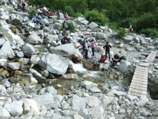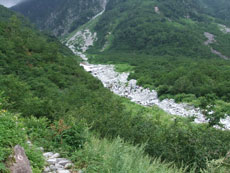 蒲田川(右俣谷)を渡る。 |