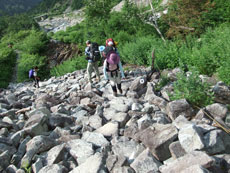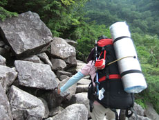 そして、足取りが重くなる「山ノ神」の荷が、少しずつであるが、私のザックの中に入り込むようになっていった。そして、鏡平への急登場面では、自分の荷を先にあげて、四苦八苦している「山ノ神」の荷を取りに降った事もあった。