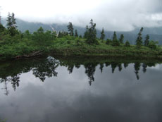 鏡平小屋横のひょうたん池 |