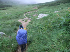 一日目のテン場は雨でした。 |