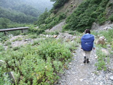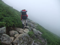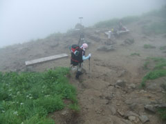 「ゆっくり降りよう。」 「何度休んでもいい。」 「楽しみながら歩こう。」 と言って、歩き始めたのが午前7時半であった。しかし、歩き始めてしまうと、天候の悪さも手伝って、そうそう、のんびりもしておれないものである。