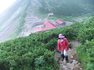 鏡平のテーブルをご一緒した福島の直子女 史と、出発前にお会いする事が出来ました。 |