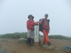 | 東京のヨダ氏と一緒に双六岳の山頂を踏んだ。 |