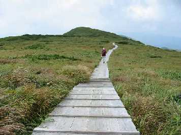 | 風衝草原の木道もアップダウンが! |