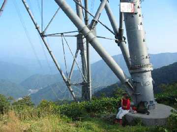 巨大鉄塔で小休止 |