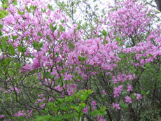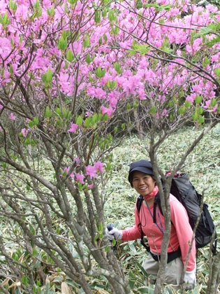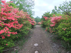 | 今年のレンゲツツジの開花は遅く、まだ 満開とはいかなかった。それでも、登山者 はなくとも花見の観光客はそれなりに・・ |