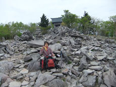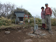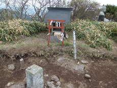 | 鶏頂山への分岐から山頂までは2~3分。 | a.m.9:47 穏やかな山頂に着く。 | 三角点と小さな祠があった。 |